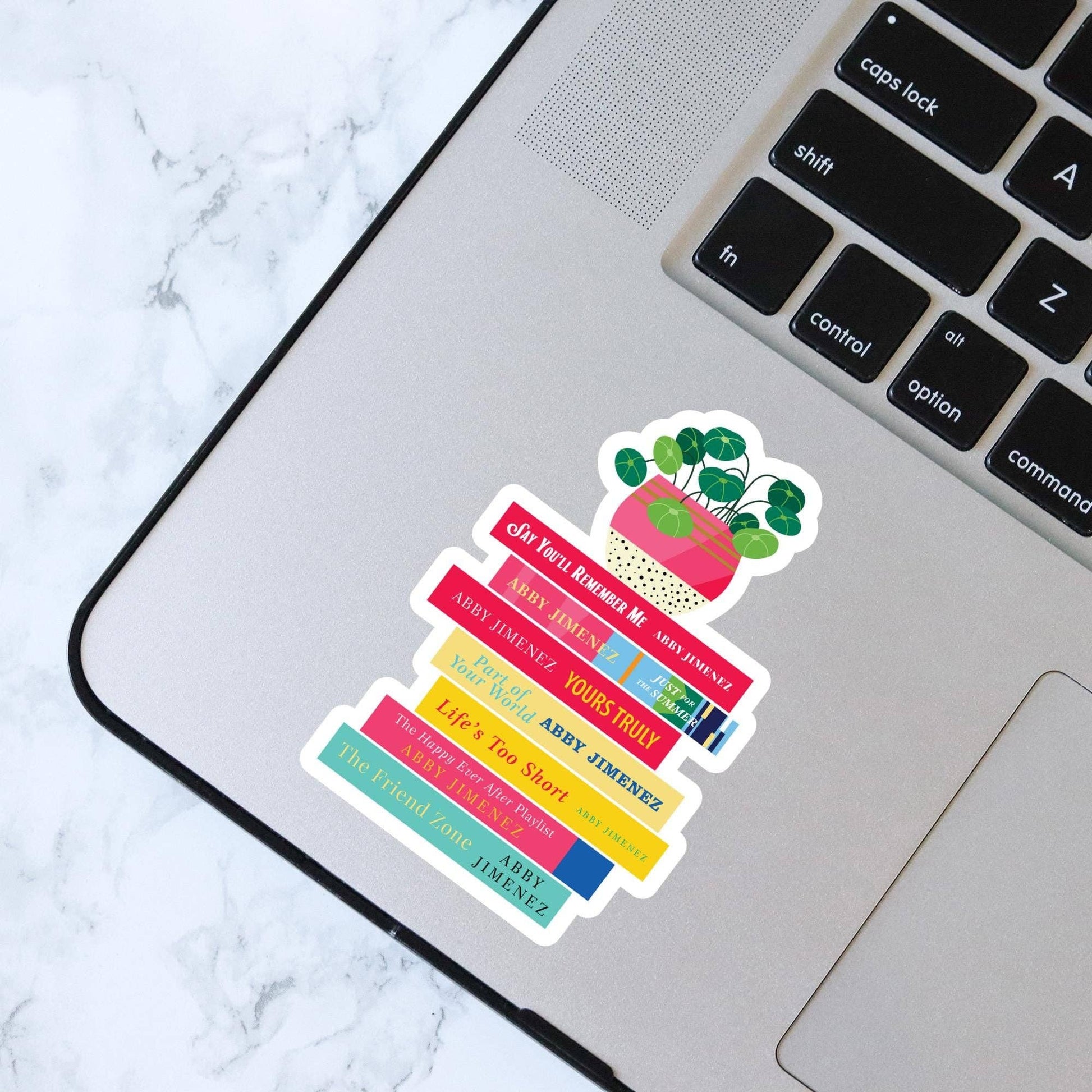 This Abby Jimenez Book Stack Sticker is perfect for your kindle, water bottle, or laptop! This sticker is 3" tall. I designed the files and the stickers are printed locally here in Bellingham WA by a fellow small business.
