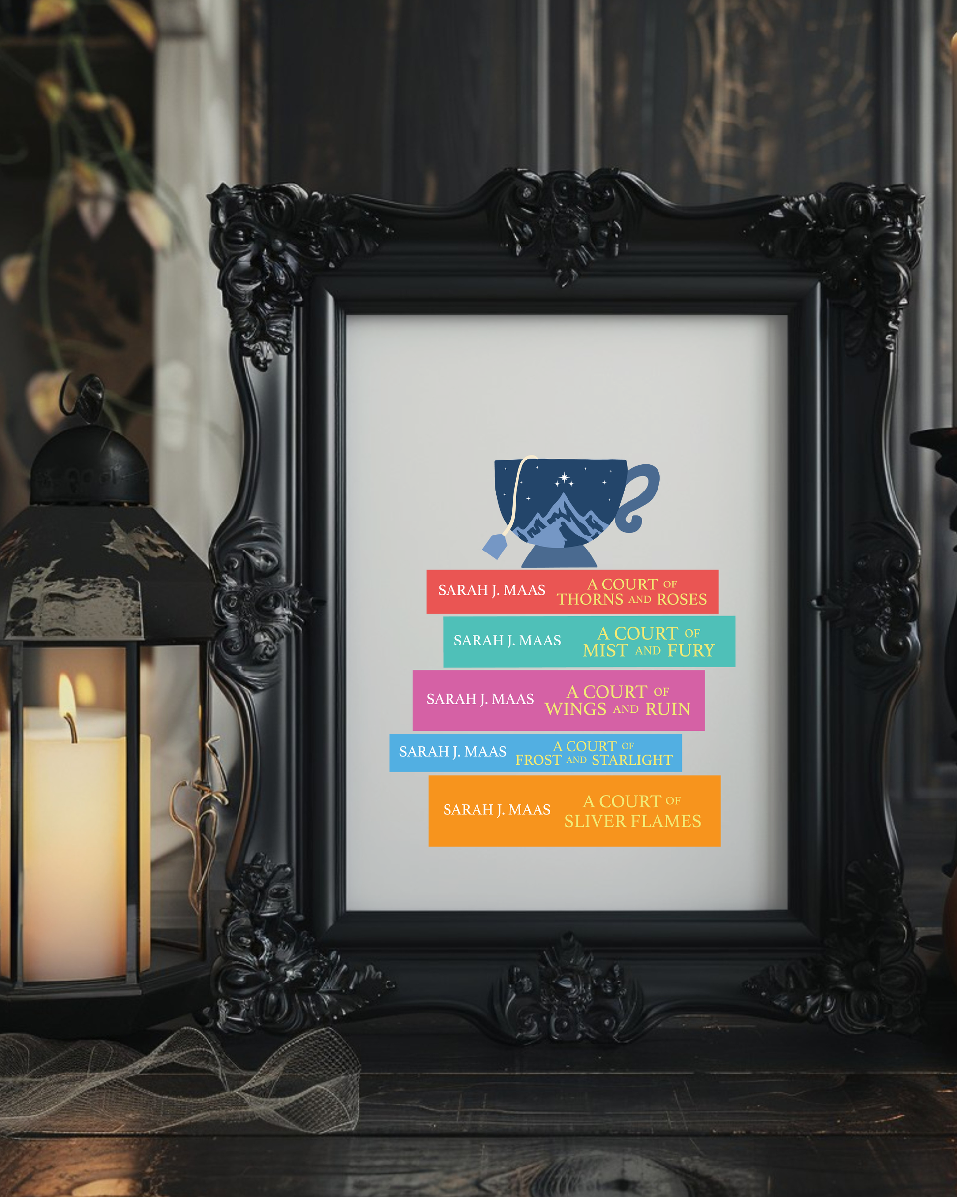 This ACOTAR Book Stack is the perfect way to show off your love for Rhys, Feyre, and their crew! I print your order here in my studio and ship to you—no printer required on your part! This 8x10 unframed art print is printed on beautiful cover stock and fits standard 8x10 ready-made frames.