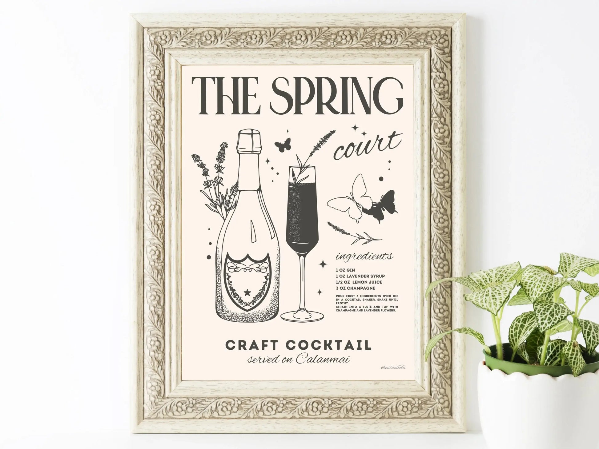 Printed on thick museum-quality matte paper, this giclee art print answers the question: What if the Spring Court was a cocktail? #lavenderfrench75