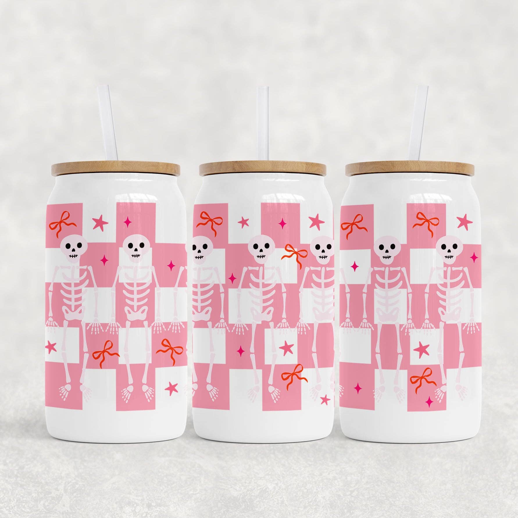 White Can Glass, Pink Skeletons